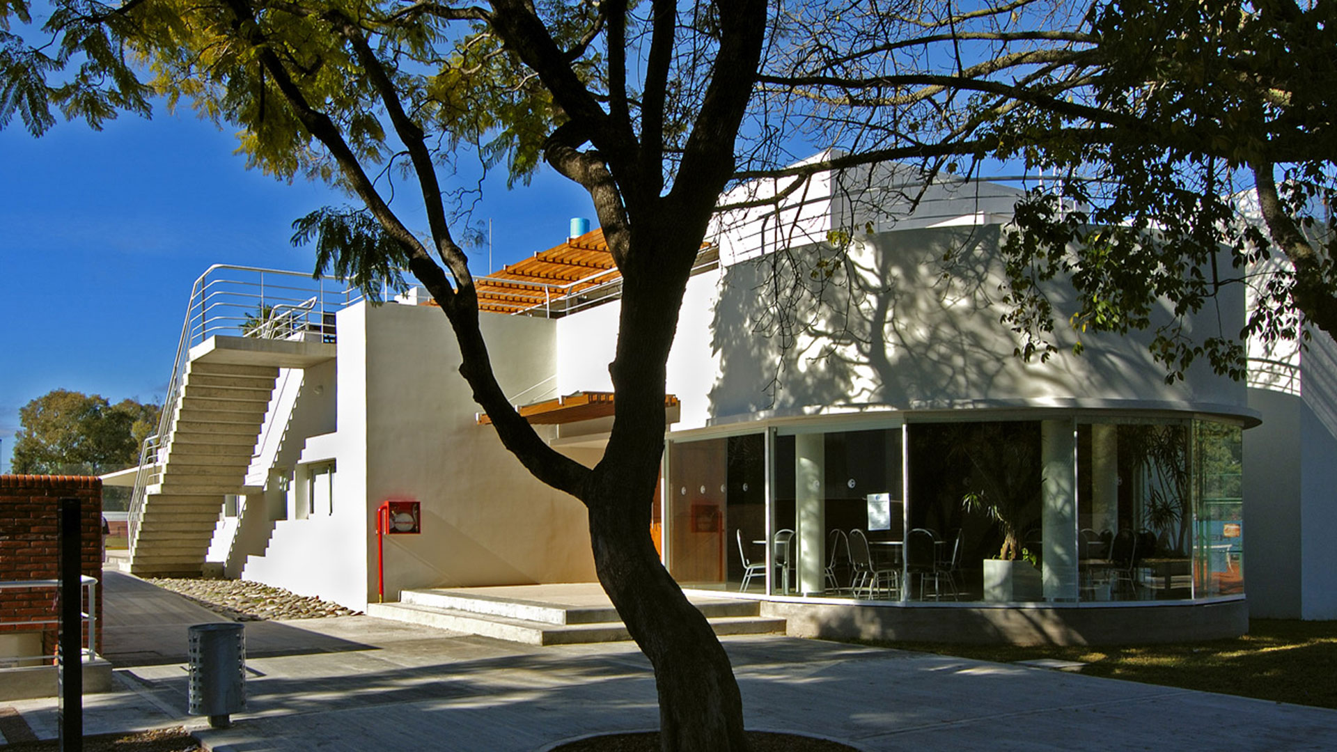 Se decide entonces potenciar las arboledas existentes, caracterizar y recuperar la sede social y emplazar el resto de los programas solicitados y propuestos de modo tal de generar un dialogo entre lo natural y lo artificial, entre lo nuevo y lo heredado. Rescatando la historia del lugar y realzando la potencia del conjunto.