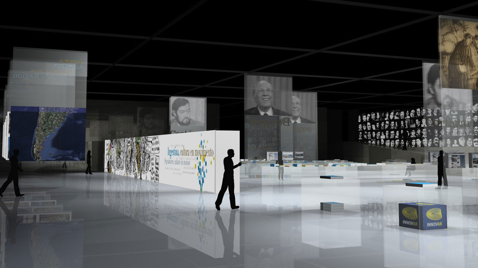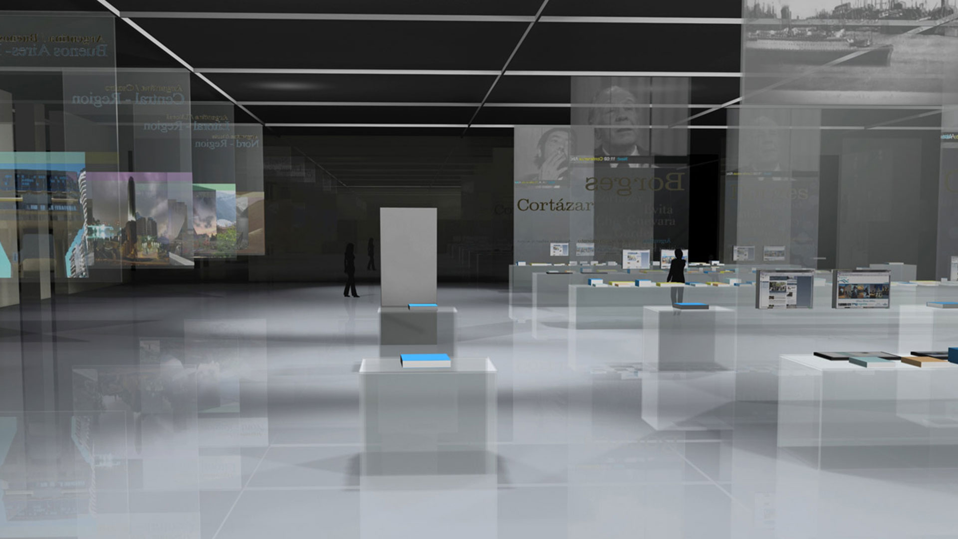 Para lograr este objetivo, se trabaja con paneles, exhibidores y mobiliario concebidos con un único material de caracteristicas livianas , modular y transparente.
