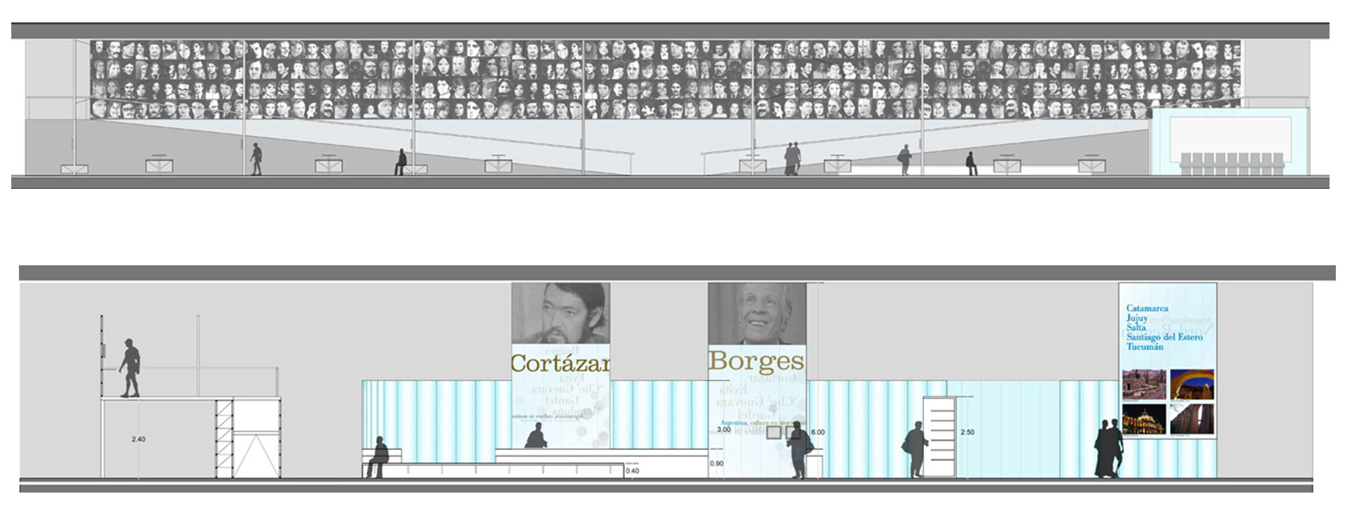 La propuesta para el pabellón se basa en la concepción de transparencia que permita la definición de cada una de las areas requeridas por el programa, sin perder la visión total del espacio.